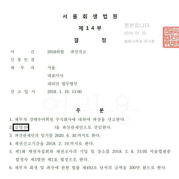 3. 채무자 회사의 사업목적 : 외국어 어학원 운영업