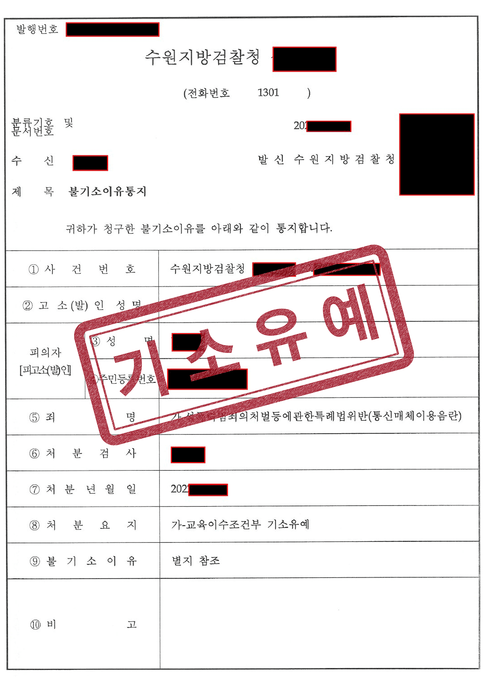 통신매체이용음란죄 기소유예 사례