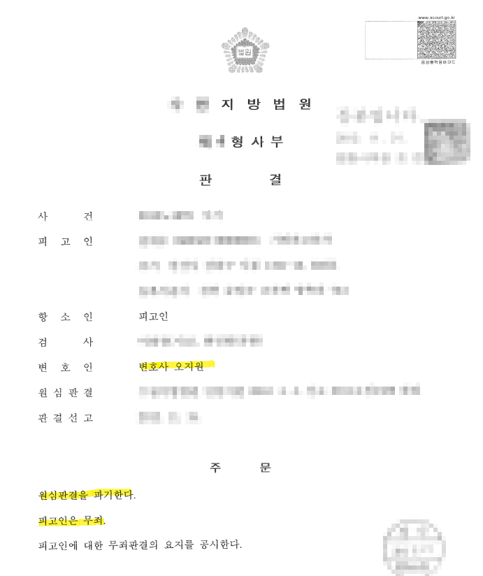 1심에서 유죄가 인정되었고 너무나 억울한 마음에 오지원 변호사를 찾아온 A씨