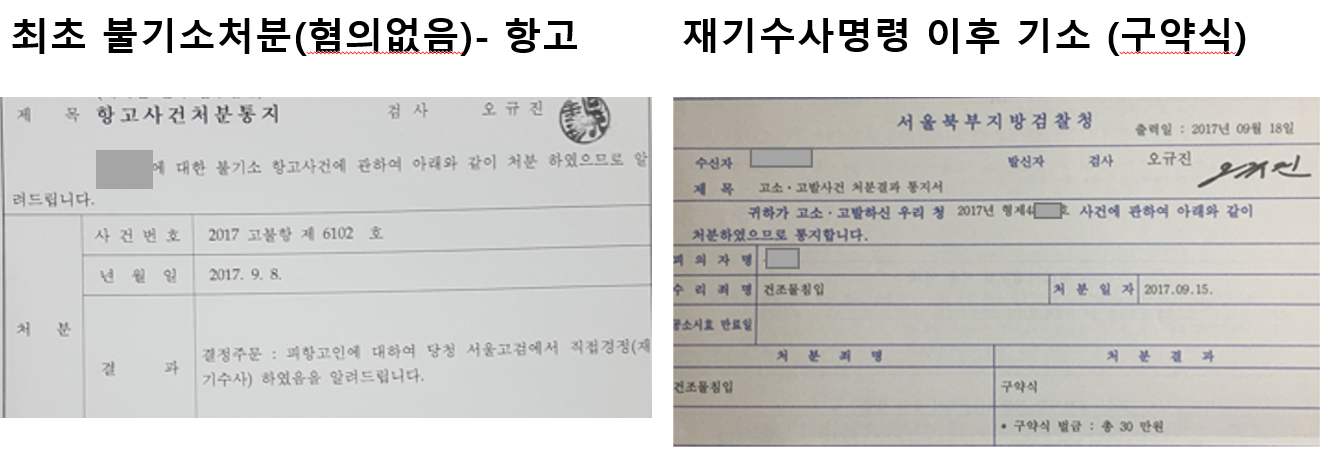 이에 결국 재기수사명령이 떨어졌고, 종국적으로 벌금형(유죄)판결로 종결되었으며,