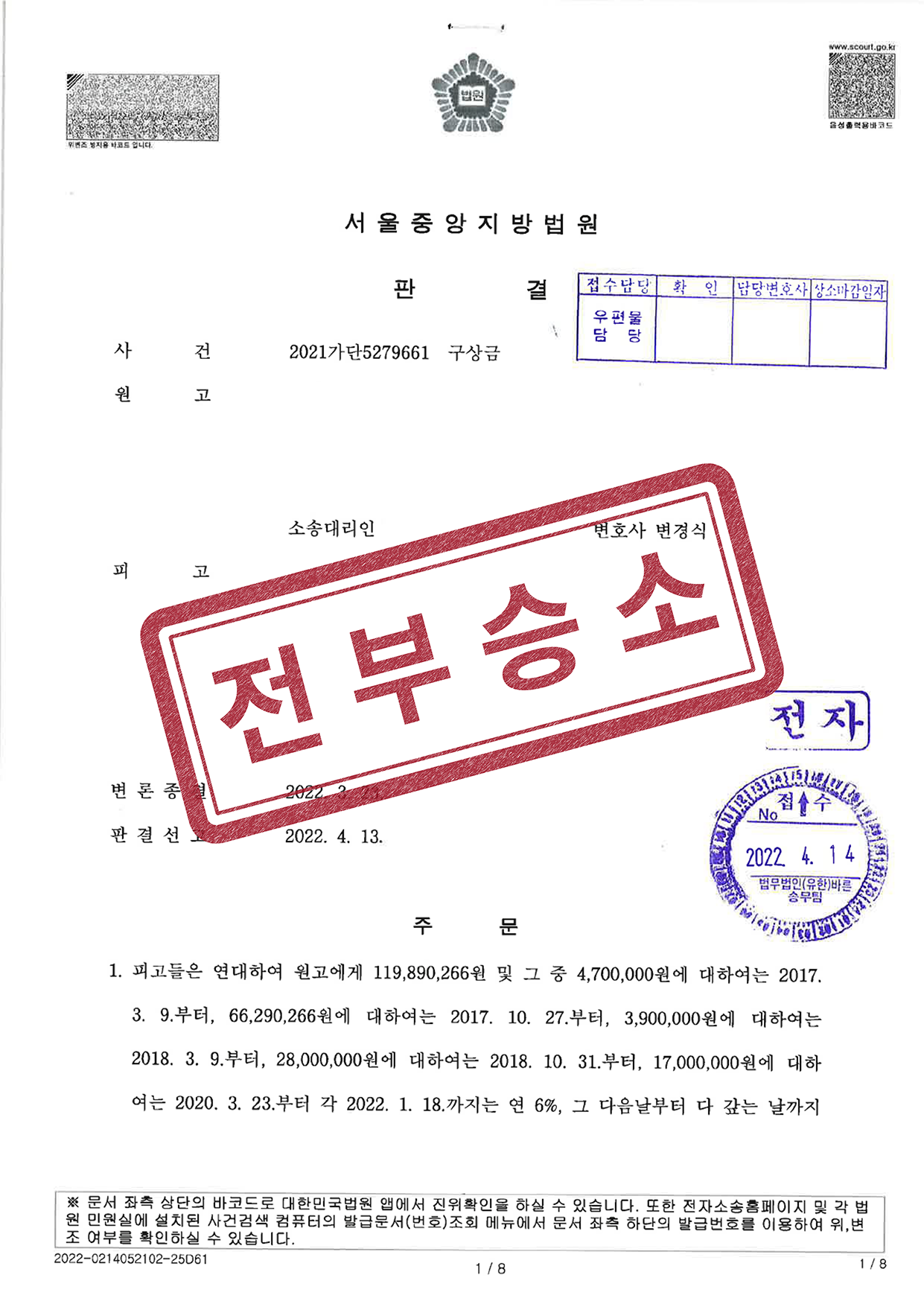 변경식 변호사는 다수의 구상금 청구 사건들을 진행하면서 자료들을 최대한 꼼꼼하게 분석하고 민법상 연대보증계약 및 구상권 관련 판결례들을 적절히 적시하여 조합원 및 연대보증인들에 대한 구상금 청구가 이유가 있다는 점을 적극적으로 주장하였습니다.