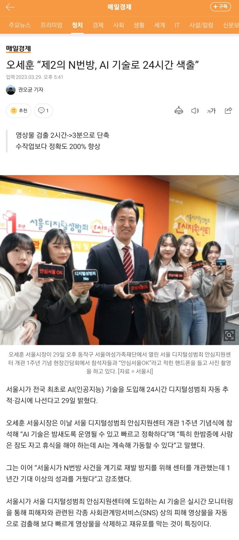 불법촬영물과 성착취물에 대한 국민적 관심은 아직도 높은 상황입니다. 바로 오늘 AI 기술까지 동원하여 24시간 색출한다는 기사가 나오기도 하였습니다. 기사는 나왔으나 기사 내용이 현실적으로 가능한 것인지, 실효성이 충분할 것인지 의문은 있습니다. 제 생각으로는 하나의 영상물을 검출하는 시간이 단축되는 것보다 수사력이 미치는 범위가 확대되는 것이 더 의미가 있는 것이 아닌가 싶습니다.