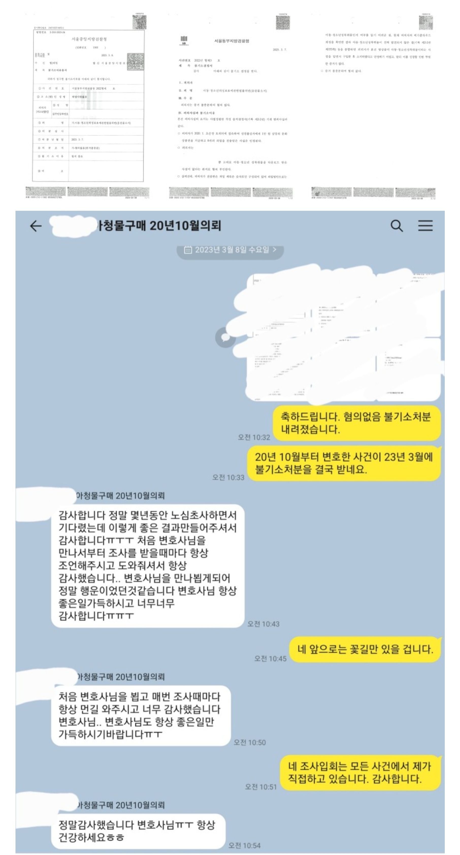 이 사건은 2020년 10월에 수임했던 사안인데 이번 달에 비로소 혐의없음 불기소처분을 받았습니다. 수사가 지나치게 길어진 상태였기 때문에 기소유예 또는 혐의없음 불기소처분 둘 중 하나가 나올 것이라 예상하였기 때문에 그냥 두었던 사건입니다. 이러한 내용은 이전 포스팅에서 소개한 적이 있습니다.