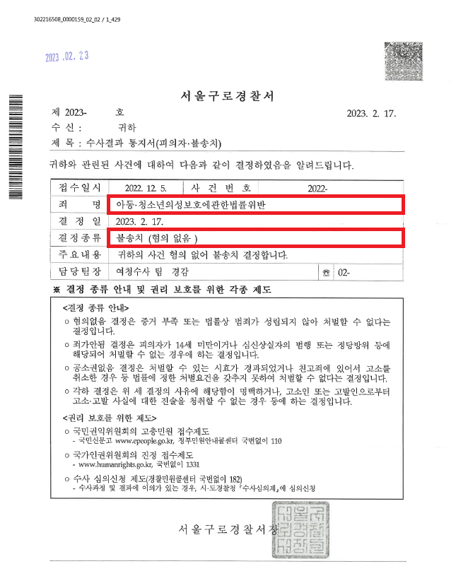 이러한 저의 조력을 바탕으로 A씨는 '불송치(혐의없음)' 결정을 받음으로써 일생일대의 위기 상황을 그 누구에게도 알리지 않고 빠르게 벗어날 수 있었습니다.