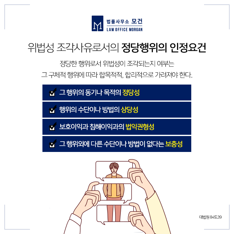 법원은 피해자는 유명 스포츠선수로 공인이고, 병역면제와 관련한 오랜 논란이 있었던 점, 이 사건 기사도 '피해자가 악성 댓글 등으로 많은 비난을 받았다'는 취지의 사실을 적시하여 피해자의 병역기피 의혹을 상기시키고 있는 것으로 보이는 점, 이 사건 댓글이 전체적으로 피해자를 비난하거나 비하 또는 경멸하는 취지로 볼 수 있다고 하더라도, 그 표현방법은 일상적으로 흔히 사용하는 것으로서 온건하고, 그 정도도 경미한 것으로 보이는 점, 피해자는 이 사건 댓글이 게시된 때로부터 약 1년 8개월이나 지나서야 피고인 등을 고소한 점 등을 위법성이 조각되는 이유로 들었습니다.