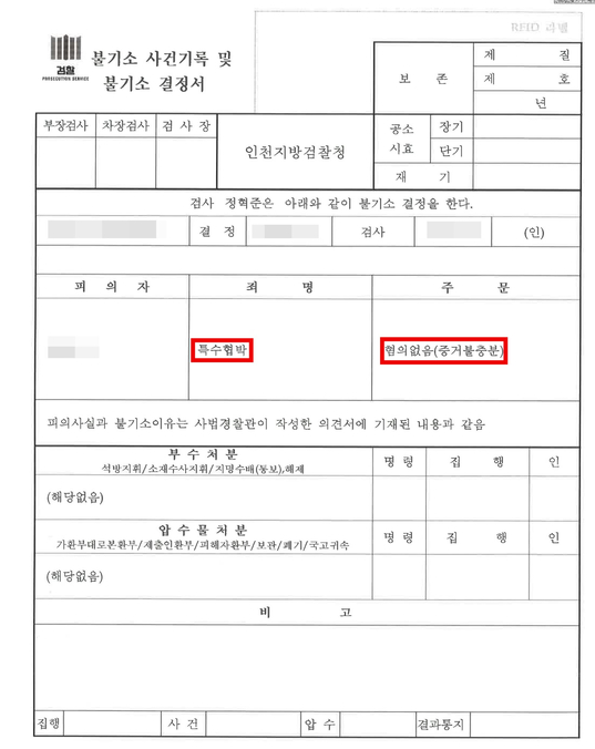 이에 의뢰인은 무혐의 처분을 받게 되었습니다.