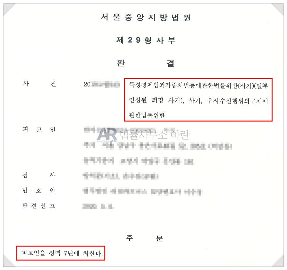 결국 상대방에 대해서는 징역 7년의 실형이 선고되었습니다.