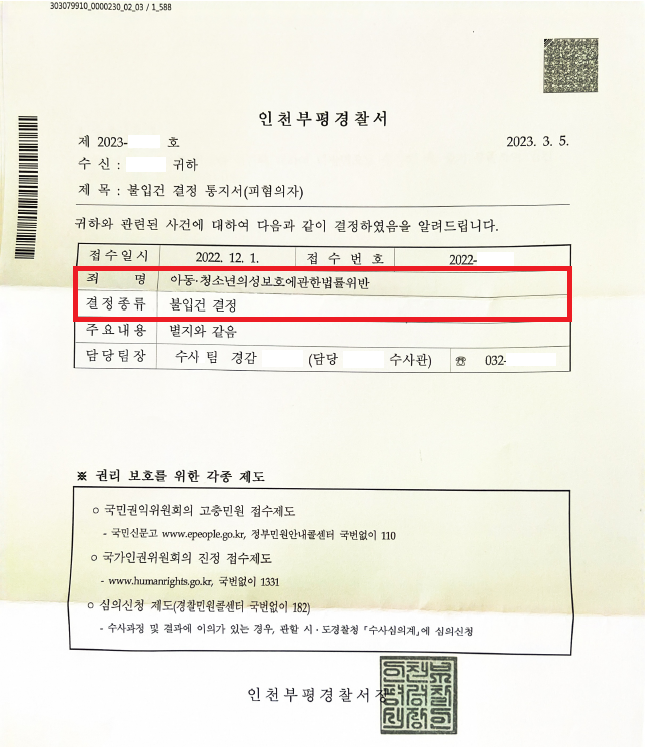 이러한 저의 조력을 바탕으로 A씨는 경찰 단계에서 '불입건' 결정을 받음으로써 수사기록도 남기지 않는 등 어떠한 불이익도 받지 않은 채 일생일대의 위기 상황에서 벗어날 수 있었습니다.