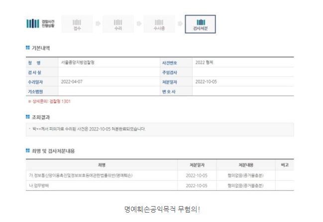 3. 최종결과 - 명예훼손공익목적 무혐의