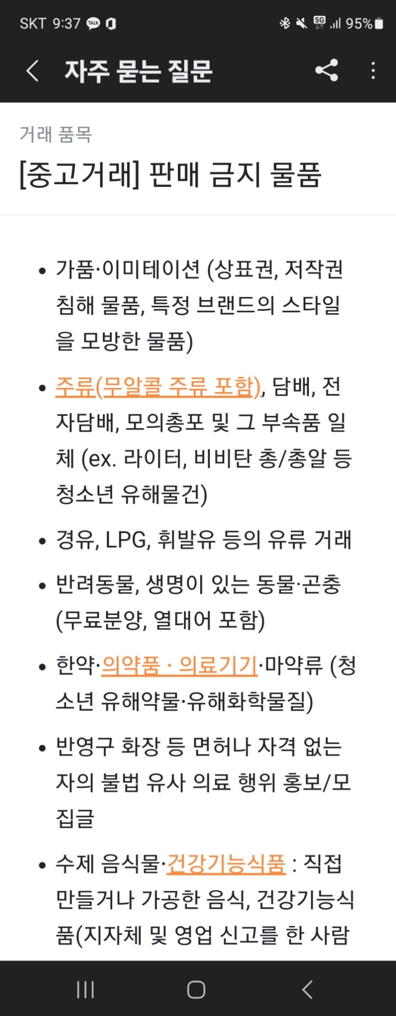 물론, 법적으로 규제가 되지 않더라도 사설 플랫폼인 당근마켓의 내부 규정이 그러하다면, 당연히 이용자로서 이를 존중하고 따르는 것이 맞겠습니다.