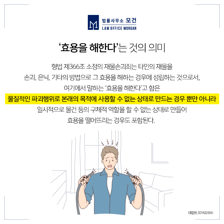 또 재물손괴죄에서 말하는 타인의 재물에는 타인과 공유하는 물건도 포함되는 바, 민법 제830조 제2항은 부부의 누구에게 속한 것인지 분명하지 아니한 재산은 부부의 공유로 추정한다고 규정하고 있으므로, 위 아파트 도어락 역시 공유재산으로 추정되어 재물손괴죄의 객체가 될 수 있다고 보았습니다. 다만 피해 정도가 비교적 경미하고, 피고인이 형사처벌 전력이 없는 점을 참작해 벌금 100만원에 집행유예 1년을 선고하였습니다(서울중앙지법 2020고정XXXX).
