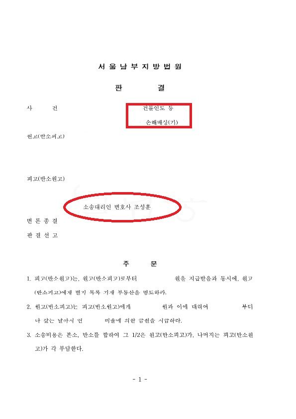 의뢰인인 임차인은 물론 소송대리를 진행한 본 변호사 모두 만족하는 결과로 마무리 될 수 있었던