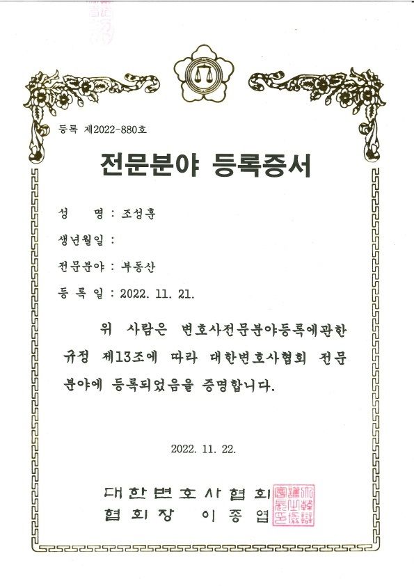 본 변호사는 대한변호사협회 부동산 전문분야 등록과 서울시 상가분쟁조정위원 등 수 많은 부동산