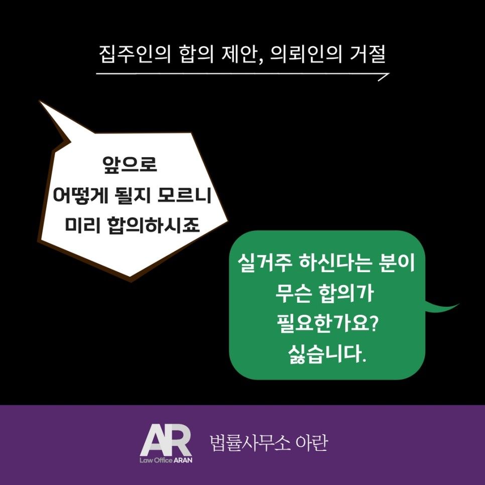이에 의뢰인은 과감하게 집주인의 합의금 제안을 거절하였습니다.