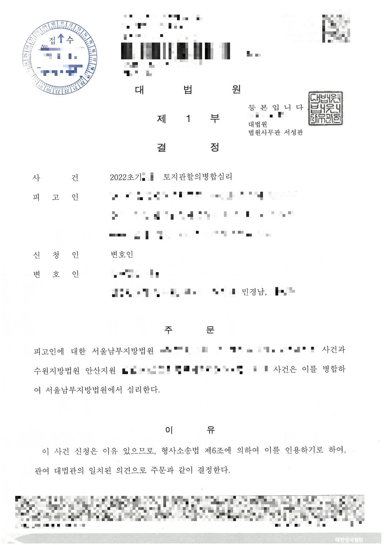 따라서, 여러 곳에서 사건이 진행되는 경우 공판기일을 앞두고 있는 경우 사전에 여러 사건에 대하여 신속하게 토지관할의 병합심리를 신청하여야 합니다. 공판기일이 진행되는 법원에 신청해야 하는 것은 아니고, 사건에 따라 복잡한 관할을 따져야 하기 때문에 신속하게 변호사에게 사건을 설명하고 신속하게 병합 심리를 신청하시는 것이 바람직합니다. 유사한 사실관계로 여러 지역에서 사건이 동시에 진행되는 경우라면 이와 관련하여 상담을 해볼 것을 권해드리겠습니다.