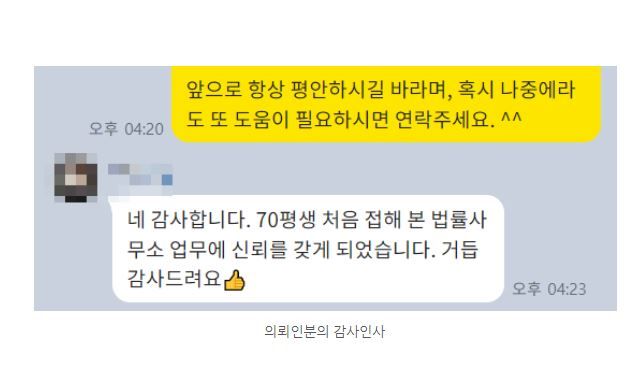 그리고 전문가의 조력을 얻어 신속히 합의를 진행해서 끝내는 게 좋겠다고 결론 내리셔서 결국 저희에게 합의대행을 의뢰하셨습니다.