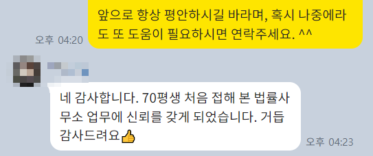의뢰인분도 하루 빨리 고소사건에서 벗어나고자 원하셨는데 원하시는 대로 걱정과 스트레스를 덜으셨고 빠르게 해결해줘서 너무 감사하다고 거듭 감사의 말씀을 전해주셨습니다. 이번 일로 톡톡히 교훈을 얻었다며 다시는 댓글을 함부로 달지 않겠다는 다짐과 함께요.