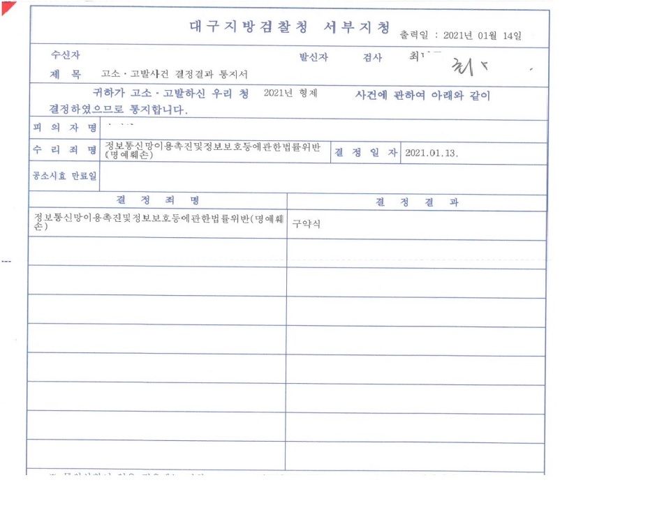 위와 같은 변호인의 조력을 통해 검찰은 가해자의 혐의가 있다고 판단하였고, 가해자는 검찰의 구약식처분(벌금형) 및 법원의 약식명령을 통해 벌금형을 선고 받게 되었습니다.