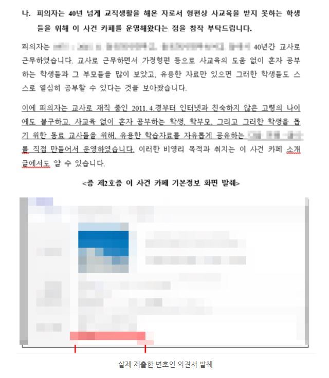 의뢰인분은 교직에 약 40년 간 몸 담으셨던 고등학교 선생님이셨습니다. 의뢰인분은 학생들 및 교사들에게 정보를 제공하고, 교육에 관한 내용을 공유하고자 좋은 마음에서 인터넷 카페를 운영하였는데요.