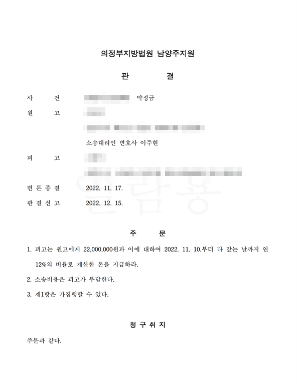 저희 사무소는 우선 채무자들에 대하여 사기고소 및 관련 민사소송을 개시하였고, 형사 합의금으로 일부를 받고 난 뒤 민사소송의 판결문을 기초로 채무자들의 재산(부동산 및 통장)을 통하여 전액을 회수 할 수 있었습니다.