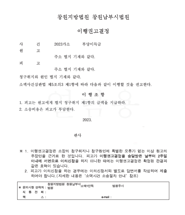 저는 즉각 입금 받은 자를 피고로 하여 민사소송 부당이득반환청구소송을 제기하였고 법원은 저희의 주장을 받아들여 이행권고결정을 내려 확정되어 의뢰인은 피해액을 반환받게 되었습니다.