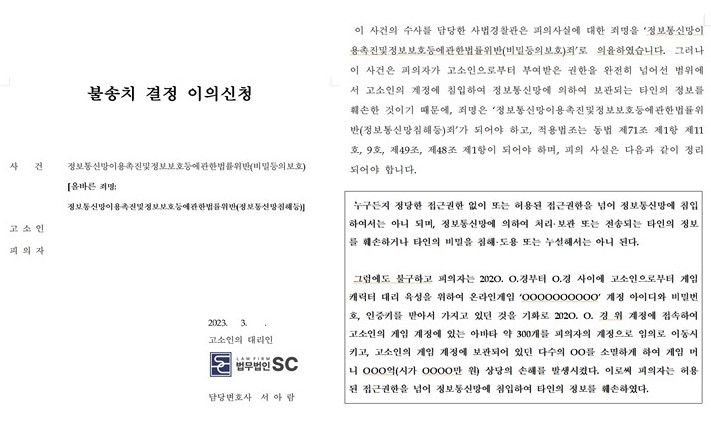 그런데 의뢰인이 회사 생활에 바빠 게임에 신경을 못 쓰는 틈을 타, 게임의 ‘부주’는 의뢰인 몰래 값비싼 아이템들을 마음대로 삭제하고, 수십 개의 캐릭터를 자신의 계정으로 마음대로 옮기기에 이릅니다. 고작 아이템이고 캐릭터 아니냐고요? 사실 이 아이템과 캐릭터들의 경제적인 가치는 상당했는데요. 의뢰인은 제대로 복구해놓으라고 했지만, 상대방이 잠수를 타 버리자 급기야 고소를 하기에 이릅니다. 게임 캐릭터와 아이템을 임의로 훼손했으니 정보통신망법위반에 해당한다는 내용으로 말이죠. 그런데 경찰은 불송치 처분을 해 버립니다.