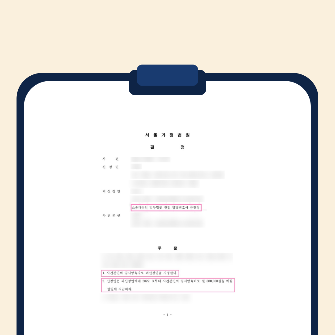 이혼전담센터 률에서 진행했던 사례와 함께 살펴보겠습니다. 의뢰인께서는 미성년의 외아들이 있는 상태였는데요. 자녀와의 애착 관계가 깊었으나 남편과 친권자 및 양육자 지정에 대해 첨예한 갈등을 빚고 있었습니다. 그래서 소송 초반에 반드시 임시 양육자 지정을 받고 싶어 하셨죠. 이에 따라 아들과의 정서적 유대는 물론, 그동안 아들의 양육은 주로 의뢰인이 도맡아 해왔다는 점, 보조 양육자가 양육을 조력해 줄 수 있는 상황 등을 강조하는 전략을 설계했습니다. 결국 재판부에서는 의뢰인의 손을 들어주었고 임시 양육자 지정을 받는 데 성공했음은 물론, 80만 원의 임시 양육비까지 넉넉하게 인정받을 수 있었습니다.