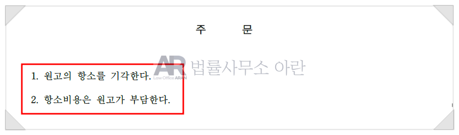 원고는 1심 판결에 불복하여 항소하였는데요. 항소심에서도 마찬가지로 최아란 변호사의 주장이 그대로 받아들여졌고, 그 결과 또다시 원고의 청구가 전부 기각되었습니다. 그리고 마찬가지로 2심 소송비용을 전액 원고가 부담하라고 판단이 내려졌습니다.
