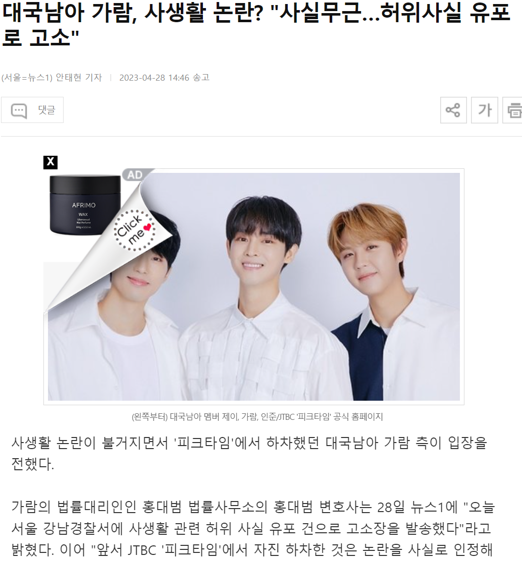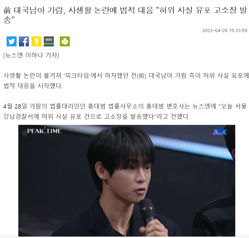 JTBC 피크타임에 출연하였다가 허위사실 명예훼손으로 하차한 가람의 고소대리인이 되었습니다.