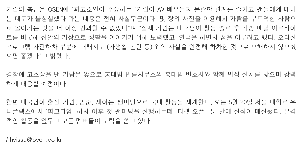 최선을 다 해서 명예훼손 범죄자가 처벌받도록 하고, 가람의 명예가 회복하도록 하겠습니다.