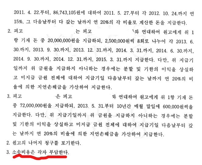기금이라 조정이 쉽지 않습니다만, 정말 수고로써 그리고 법원의 적극적인 도움 아래 분할변제계획이 받아들여지고, 소송비용각자 부담으로 채무자인 의뢰인의 부담을 줄여 들어 주었습니다.