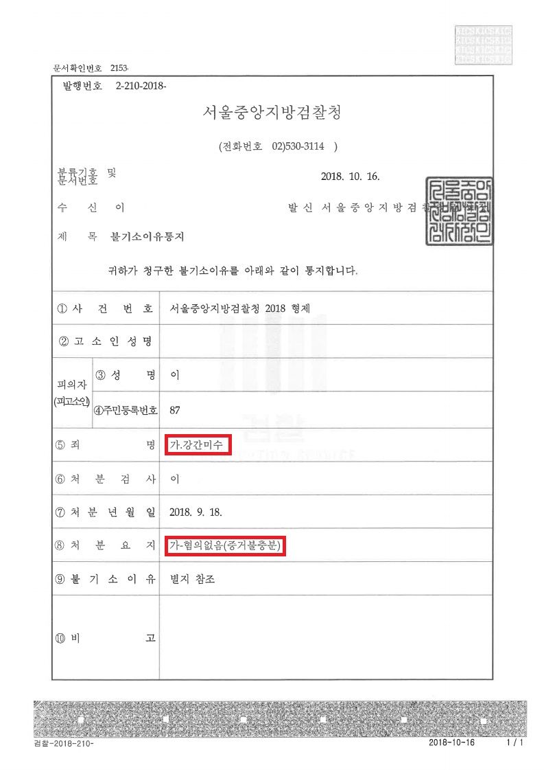 이에 의뢰인은 피혐의 사실에 대하여 경찰로부터 혐의없음(증거불충분) 처분을 받았습니다.