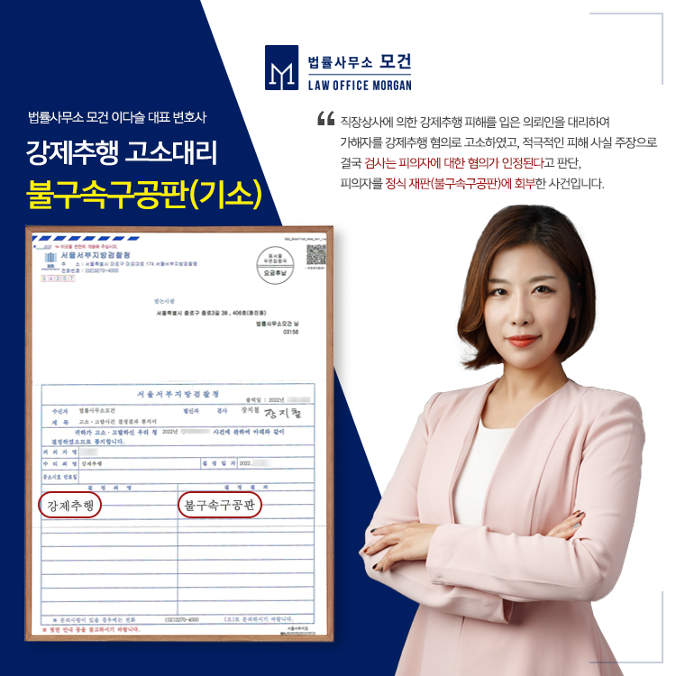고소를 결심하기까지 쉽지 않은 선택을 하셨음을 충분히 공감하고, 피해자의 피해사실이 수사기관에 명확히 전달되어 재판까지 진행될 수 있도록 전 고소 과정을 돕고 있습니다. 도중 합의에 있어서도 높은 액수로 합의할 수 있도록 최선을 다하고 있으니 도움이 필요하신 분들은 법률사무소 모건으로 문의하시기 바랍니다.