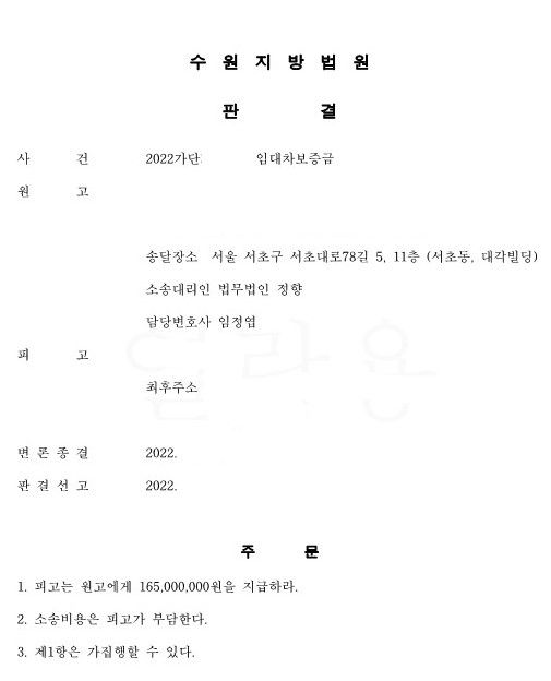 임차인은 전세금반환소송을 제기하여 4개월 만에 승소판결을 받아 강제경매를 신청하였습니다.