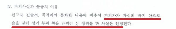 ④ 이후 "A씨가 바지 속으로 손을 넣어 성기 부위를 만진 것은 맞다. 그러나 A씨는 피부질환을 앓고 있는 자로서, 동네 단골 카페라 마음이 너무나도 편해진 나머지 자신도 모르게 가려운 부위를 긁은 것이다."라는 내용의 변호인의견서를 작성하여 제출한 다음,