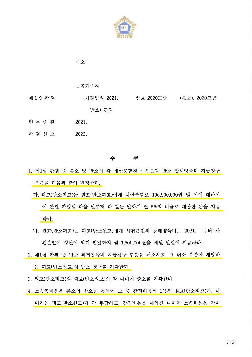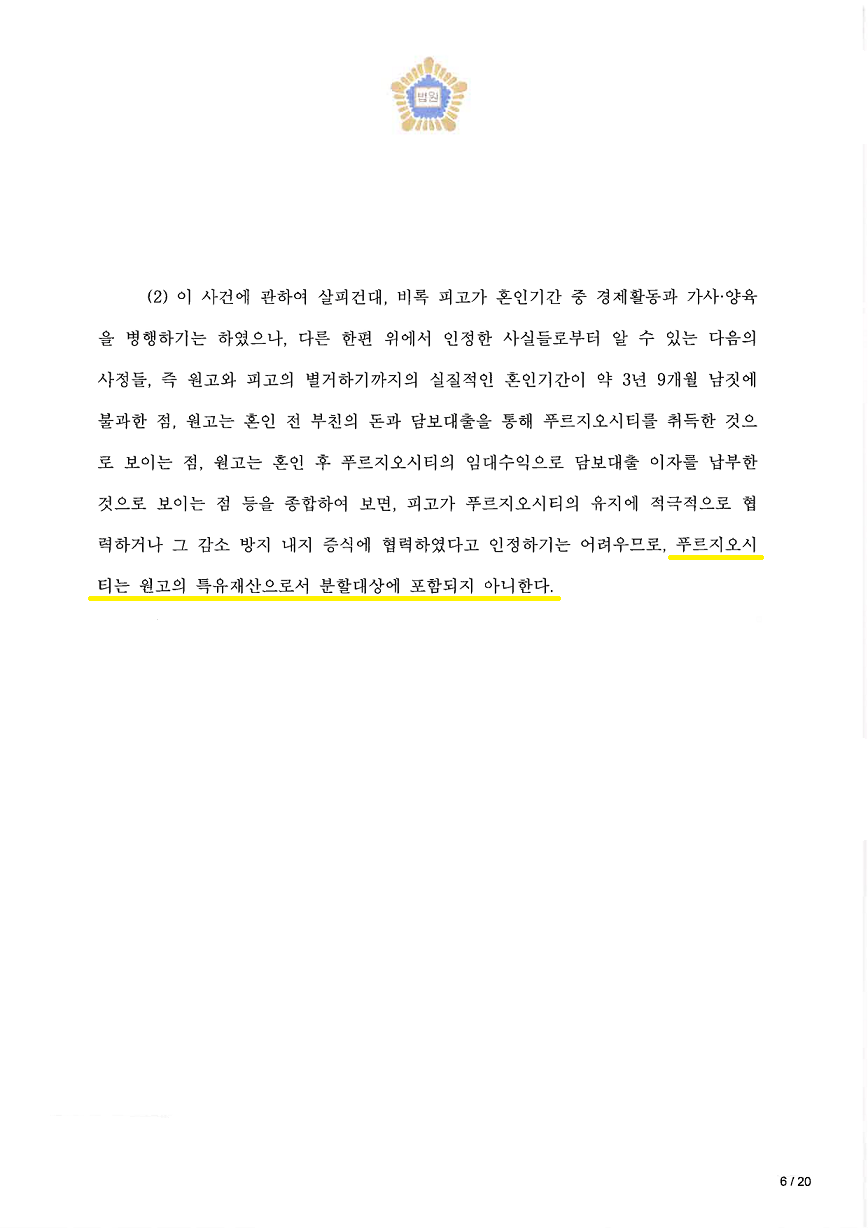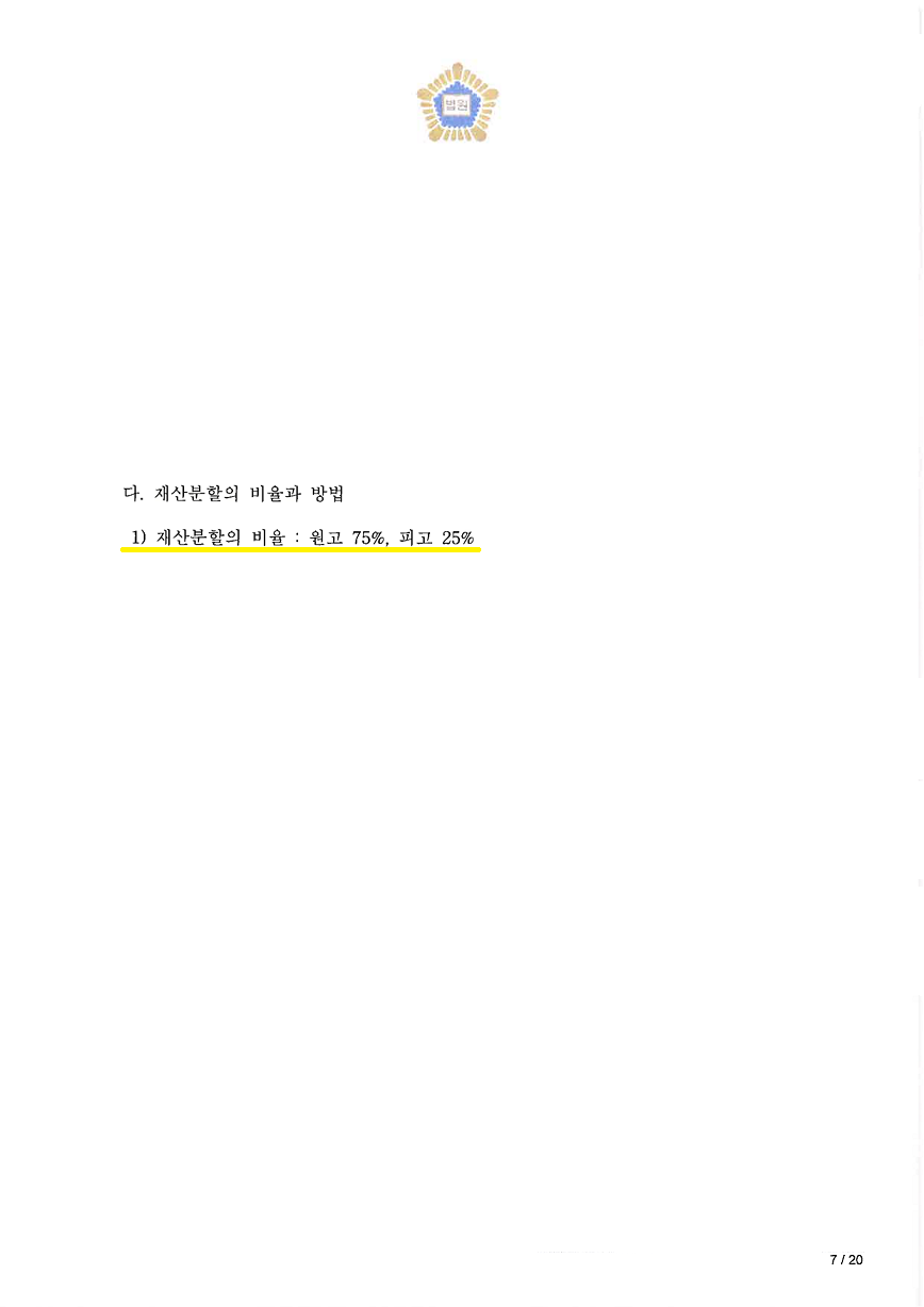 다행히 항소심에서 저희가 주장한 것이 전부 인정되어 특유재산이 분할대상에서 제외되었고, 재산분할의 비율이 변경되어 의뢰인의 기여도를 75%까지 높일 수 있었으며, 과거양육비를 지급하라는 부분도 취소되며 성공적으로 마무리된 사안입니다.