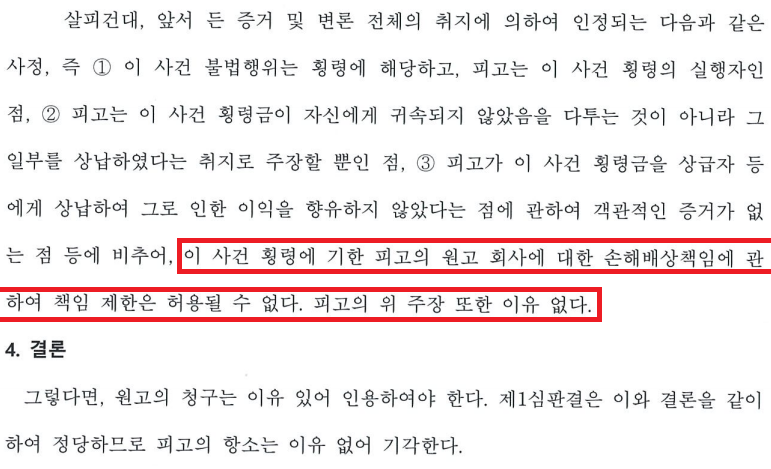 이후 원고 회사로부터 적발당하자, 피고는 공범인 상급자가 횡령액을 변제한다는 합의("이 사건 합의")를 하였다고 주장하면서, 원고 회사에 변제를 하지 아니하였습니다.