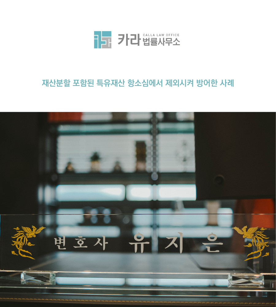 이번 시간에는 1 심 판결에 불만을 가지고 결과를 뒤집기 위해 저희 법률사무소 카라를 찾아오신 의뢰인의 특유재산 항소심 방어사례를 소개해 드리고자 합니다.
