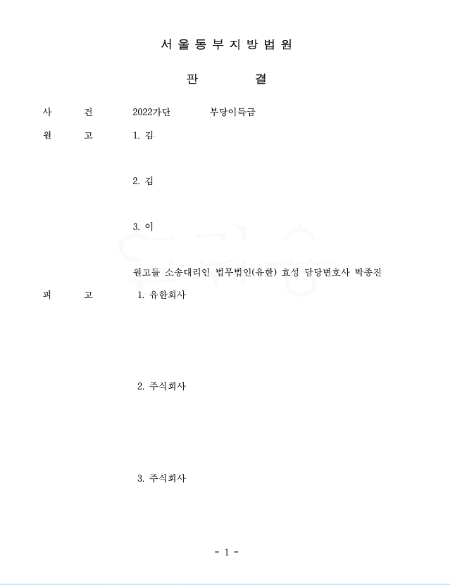 저는 즉각 입금 받은 자들을 피고로 하여 민사소송 부당이득반환청구소송을 제기하였고 법원은 저희의 주장을 받아들여 원고 승소 판결을 선고하여 의뢰인들은 피해액을 반환받게 되었습니다.