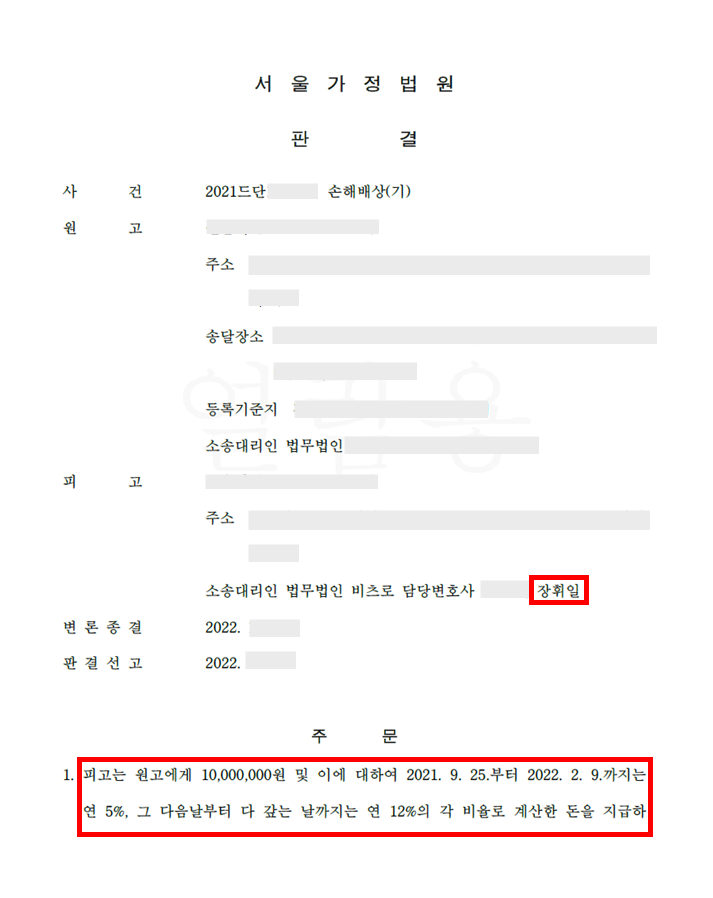 원고의 남편과 피고는 약 2년 동안 불륜 관계를 유지하였고, 그 기간 동안 여러 차례 임신을 해 수술도 하였습니다. 또한 원고와 원고의 남편이 거주하는 곳과 멀지 않은 곳에 거주하며 잦은 만남을 가졌습니다. 이러한 사실을 알게 된 원고가 의뢰인에게 손해배상을 청구하여 본 변호인을 찾아오셨습니다.