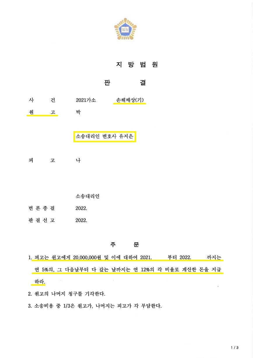 결국 상간녀로부터 위자료로 2천만 원을 지급받으며 성공적으로 마무리가 된 사안입니다.