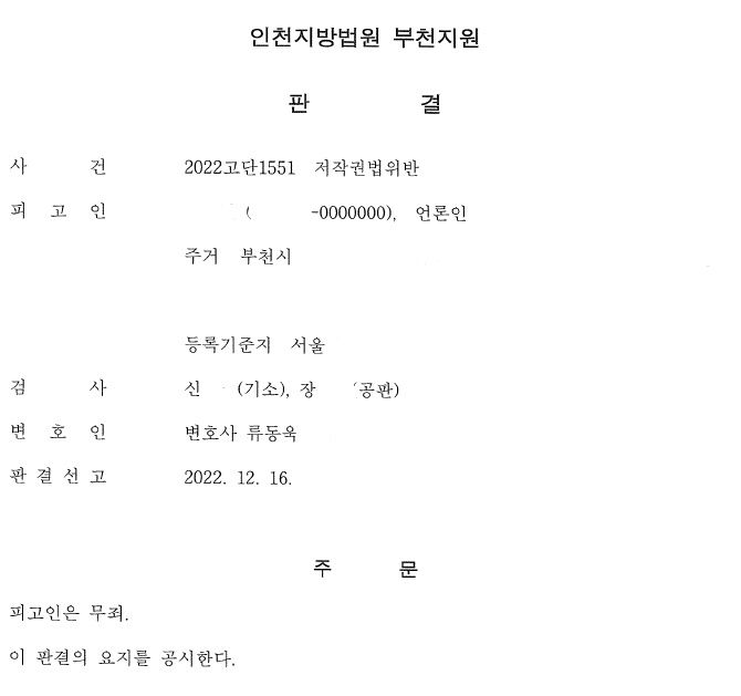 [사안] 피고인은 유튜브 채널을 운영하는 자이고, 피해자가 유튜브에 올린 영상 중 일부를 복제하여 자신의 유튜브에 올렸습니다. 이로 인해 피고인은 저작권법위반으로 기소가 되었습니다. [저작권법 규정] 제136조(벌칙) ① 다음 각 호의 어느 하나에 해당하는 자는 5년 이하의 징역 또는 5천만원 이하의 벌금에 처하거나 이를 병과(倂科)할 수 있다. 1. 저작재산권, 그 밖에 이 법에 따라 보호되는 재산적 권리(제93조에 따른 권리는 제외한다)를 복제, 공연, 공중송신, 전시, 배포, 대여, 2차적저작물 작성의 방법으로 침해한 자 제26조(시사보도를 위한 이용) 방송ㆍ신문 그 밖의 방법에 의하여 시사보도를 하는 경우에 그 과정에서 보이거나 들리는 저작물은 보도를 위한 정당한 범위 안에서 복제ㆍ배포ㆍ공연 또는 공중송신할 수 있다 제28조(공표된 저작물의 인용) 공표된 저작물은 보도ㆍ비평ㆍ교육ㆍ연구 등을 위하여는 정당한 범위 안에서 공정한 관행에 합치되게 이를 인용할 수 있다. [관련법리] 구 저작권법(2000. 1. 12. 법률 제6134호로 개정되기 전의 것) 제2조 제8호는 방송이란 일반 공중으로 하여금 수신하게 할 목적으로 무선 또는 유선통신의 방법에 의하여 음성·음향 또는 영상 등을 송신하는 것(차단되지 아니한 동일구역 안에서 단순히 음을 증폭 송신하는 것을 제외한다.)을 말한다고 규정하고 있는바, 여기서 말하는 방송에는 일반 공중으로 하여금 동시에 수신하게 할 목적으로 무선 또는 유선통신의 방법에 의하여 음성 등을 송신하는 것( 같은 법 제2조 제8호 참조) 뿐만 아니라 그와 달리 방송이 서버(Server)까지만 송신이 되고 일반 공중이 개별적으로 선택한 시간과 장소에서 인터넷을 통하여 그에 접속하여 비로소 서버로부터 개인용 단말기까지 송신이 이루어지는 인터넷방송과 같은 전송( 같은 법 제2조 제9호의2 참조)도 포함된다 (대법원 2003. 3. 25. 선고 2002다66946). 구 저작권법 제28조는 “공표된 저작물은 보도·비평·교육·연구 등을 위하여는 정당한 범위 안에서 공정한 관행에 합치되게 이를 인용할 수 있다.”고 규정하고 있다. 이 규정에 해당하기 위하여는 그 인용의 목적이 보도·비평·교육·연구에 한정된다고 볼 것은 아니지만, 인용의 ‘정당한 범위’는 인용저작물의 표현 형식상 피인용저작물이 보족, 부연, 예증, 참고자료 등으로 이용되어 인용저작물에 대하여 부종적 성질을 가지는 관계(즉, 인용저작물이 주이고, 피인용저작물이 종인 관계)에 있다고 인정되어야 하고, 나아가 정당한 범위 안에서 공정한 관행에 합치되게 인용한 것인지 여부는 인용의 목적, 저작물의 성질, 인용된 내용과 분량, 피인용저작물을 수록한 방법과 형태, 독자의 일반적 관념, 원저작물에 대한 수요를 대체하는지 여부 등을 종합적으로 고려하여 판단하여야 한다 ( 구 저작권법 제28조는 “공표된 저작물은 보도·비평·교육·연구 등을 위하여는 정당한 범위 안에서 공정한 관행에 합치되게 이를 인용할 수 있다.”고 규정하고 있다. 이 규정에 해당하기 위하여는 그 인용의 목적이 보도·비평·교육·연구에 한정된다고 볼 것은 아니지만, 인용의 ‘정당한 범위’는 인용저작물의 표현 형식상 피인용저작물이 보족, 부연, 예증, 참고자료 등으로 이용되어 인용저작물에 대하여 부종적 성질을 가지는 관계(즉, 인용저작물이 주이고, 피인용저작물이 종인 관계)에 있다고 인정되어야 하고, 나아가 정당한 범위 안에서 공정한 관행에 합치되게 인용한 것인지 여부는 인용의 목적, 저작물의 성질, 인용된 내용과 분량, 피인용저작물을 수록한 방법과 형태, 독자의 일반적 관념, 원저작물에 대한 수요를 대체하는지 여부 등을 종합적으로 고려하여 판단하여야 한다 ( 대법원 2013. 2. 15. 선고 2011도5835판결). [판단] 피고인이 운영하는 유튜브 역시 '방송'에 해당하고, 피고인은 당시 언론에 보도된 한강 실종 대학생 사건에 대한 보도 및 비평 방송 중 자신과 반대 의견을 개진하는 피해자의 영상을 사용하였으므로 목적의 정당성이 인정됩니다(목적의 정당성). 피고인이 인용한 피해자의 영상은 약 1시간 중 1분 정도에 불과하고(인용된 내용과 분량), 피고인의 영상에 피해자 영상의 출처를 표시하여으며(피인용 저작물의 수록 형태), 피고인이 유튜브 운영 중 슈퍼챗 형태로 금전적 이득을 얻었으나 이는 시청자의 자발적 후원금에 해당하는 등 저작권법 제26조 및 제28조에 해당할 수 있어 피고인이 피해자의 지적재산권을 침해하였다고 볼 수 없다는 것입니다. 이에 따라 피고인에게 무죄를 선고했습니다. |