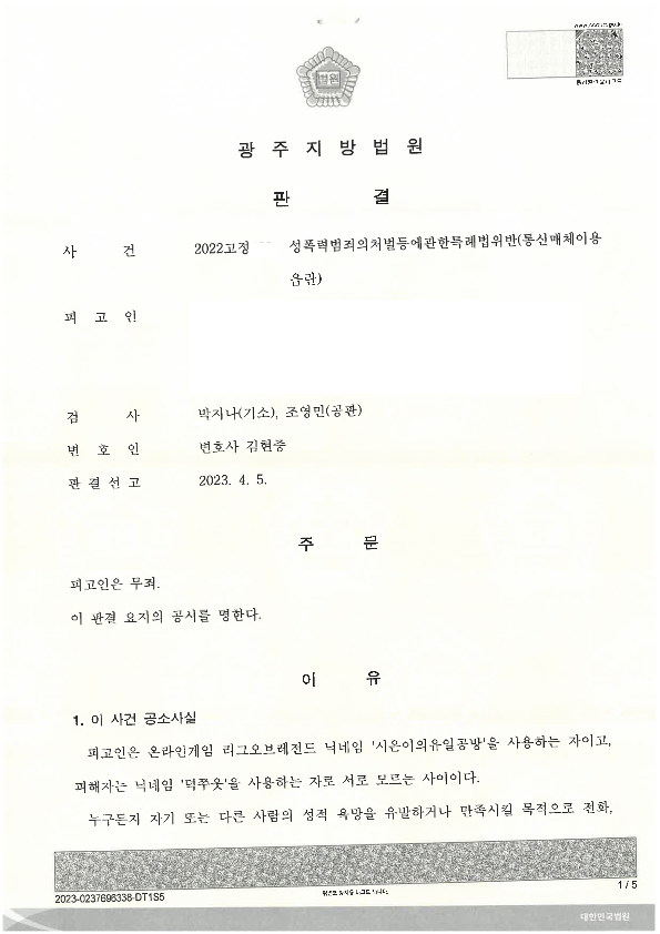 고소인을 법정에 증인으로 불러 신문하여 당시 채팅이 이루어진 상황과 피고인의 일련의 발언이 이루어진 경위, 고소인이 대응하였던 방식 등에 대하여 세세히 파악 하였습니다.
