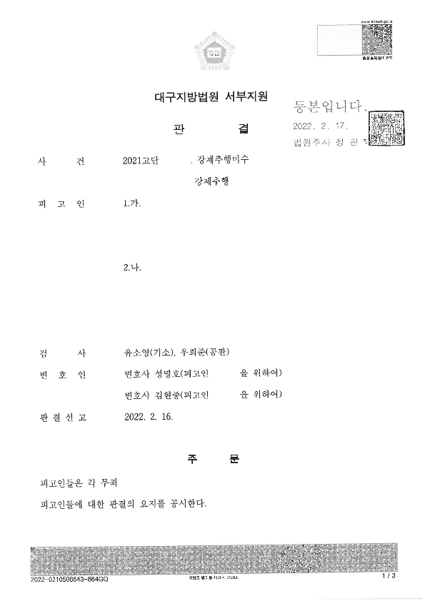 이에 본 변호인은 결국 위 사건을 무죄로 마무리할 수 있었습니다.