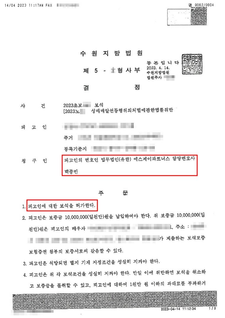 보석 보증금은 아내분께서 보증보험으로 갈음할 수 있어 1천만 원의 보석보증금을 보증보험 증권으로 대체할 수 있었습니다.