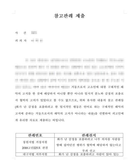 오늘 소개할 의뢰인 분은 병원에서 일하고 계시는 40대 여성분이셨습니다. 병원의 진료 시간에 장시간 민원을 제기하면서 거친 말과 행동으로 병원 사람들을 불안하게 하던 환자를 제지하는 과정에서 같이 언성을 높이며 화를 내게 되었는데, 그 언동이 ‘협박’에 해당한다는 억울한 누명을 쓰고 고소당한 분이셨죠.