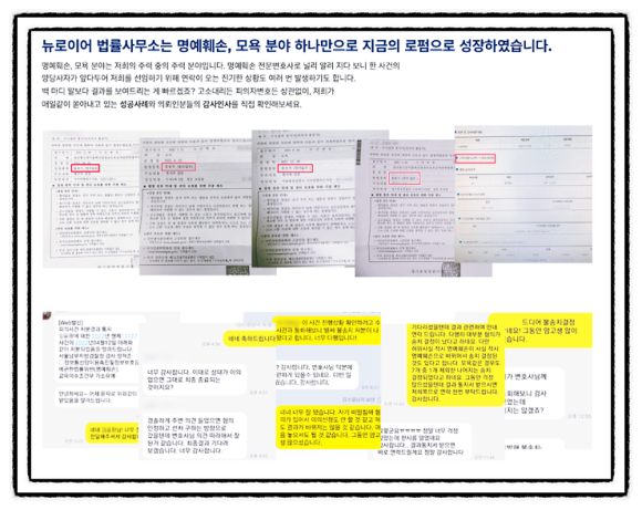 특히나 최근 1,2심에서 벌금형/집행유예가 나온 명예훼손 사건을 대법원에서 무죄를 이끈 사례로 많은 분들이 '명예훼손은 뉴로이어다'라고 말씀해 주시며 찾아주고 계시는 상황입니다.