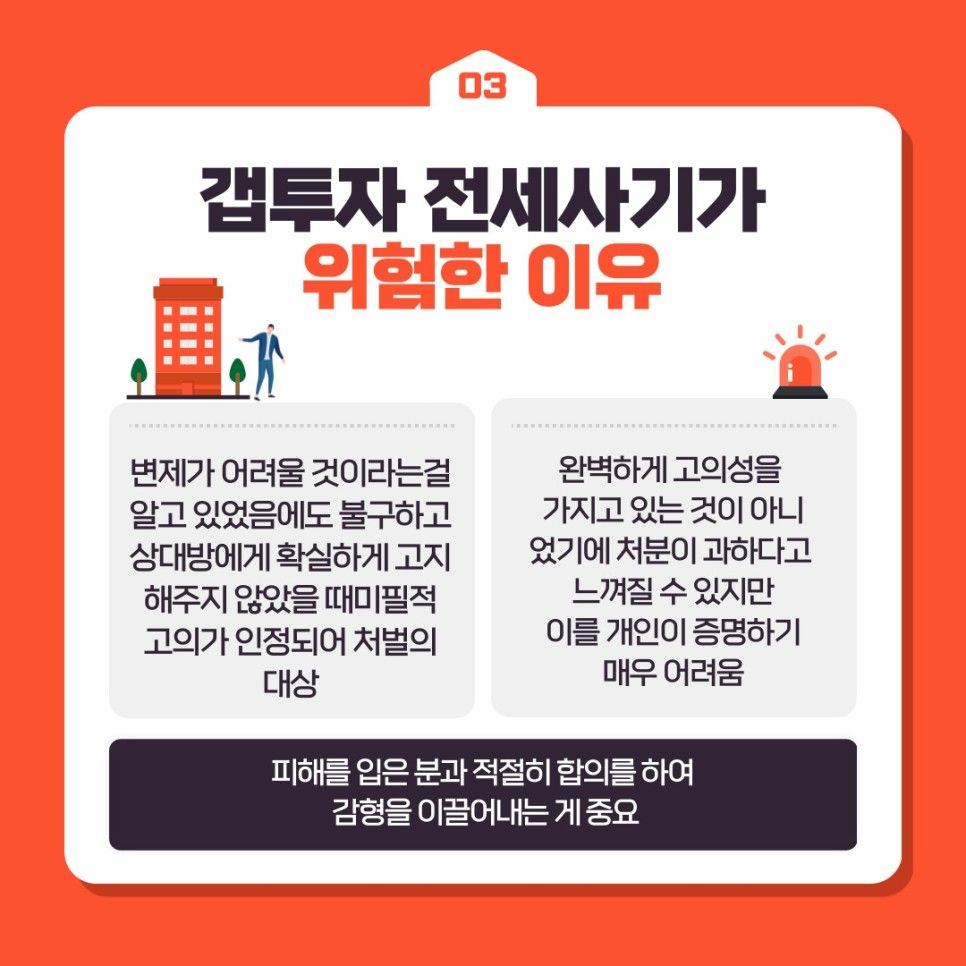 이러한 투자 방식에서 발생할 수 있는 갭투자 전세사기도 꼭 알아두어야만 사기를 당하지 않도록 예방할 수 있으며 만약 이미 사기를 당한 상황이라면 신속하게 대처할 수 있습니다.