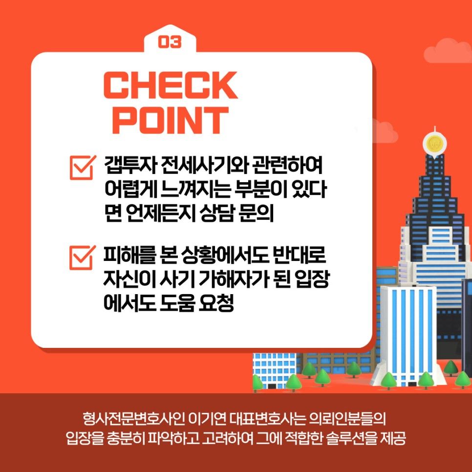 갭투자 전세사기와 관련하여 어렵게 느껴지는 부분이 있다면 언제든지 상담 문의 주시기 바랍니다.