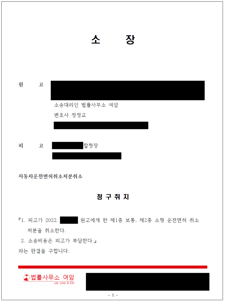 관련 자료를 다시 재정리하고, 법원에 운전면허 취소를 청구하는 소장을 제출하였습니다.